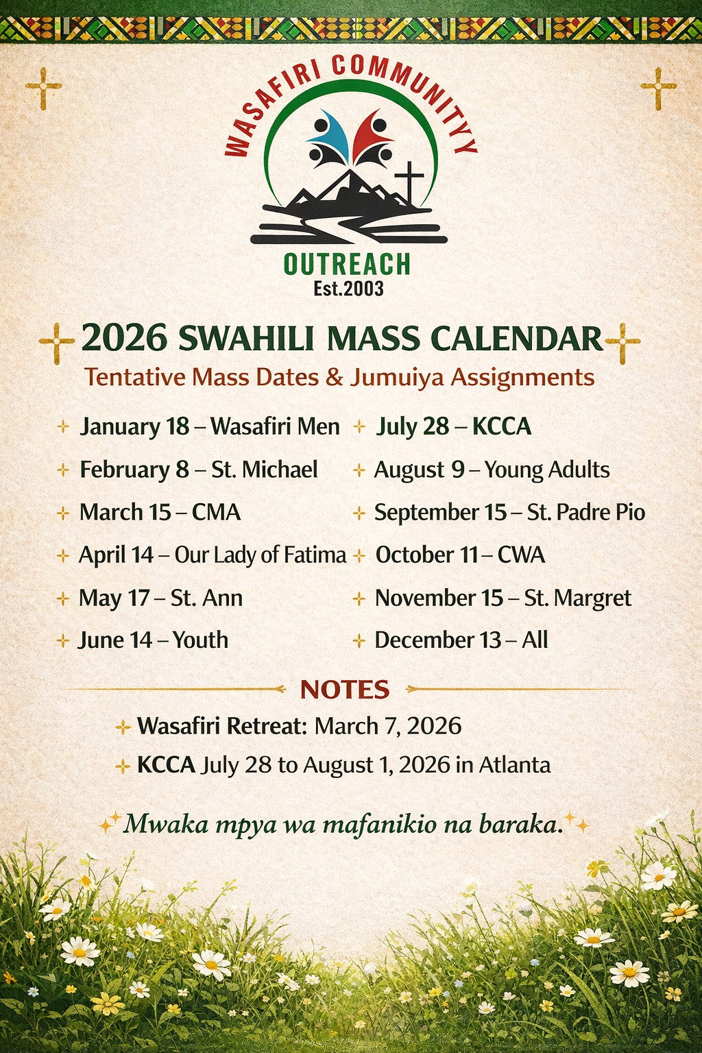 Order of Mass (English & Swahili) The Holy Rosary The Seven Sacraments Mass Calendar Catholic Daily Readings, USCCB Children and Youth corner Children Order of mass and prayers: https://sermons4kids.com https://www.livingfaith.com/kids Liturgical seasons: https://www.sadlier.com/religion/blog/teaching-about-the-liturgical-year Youth resources: https://www.catholicmom.com/articles/2010/08/03/how-to-get-teens-to-participate-in-mass-by-jared-dees, https://www.catechist.com/7-tips-teens-everyone-else-get-mass/